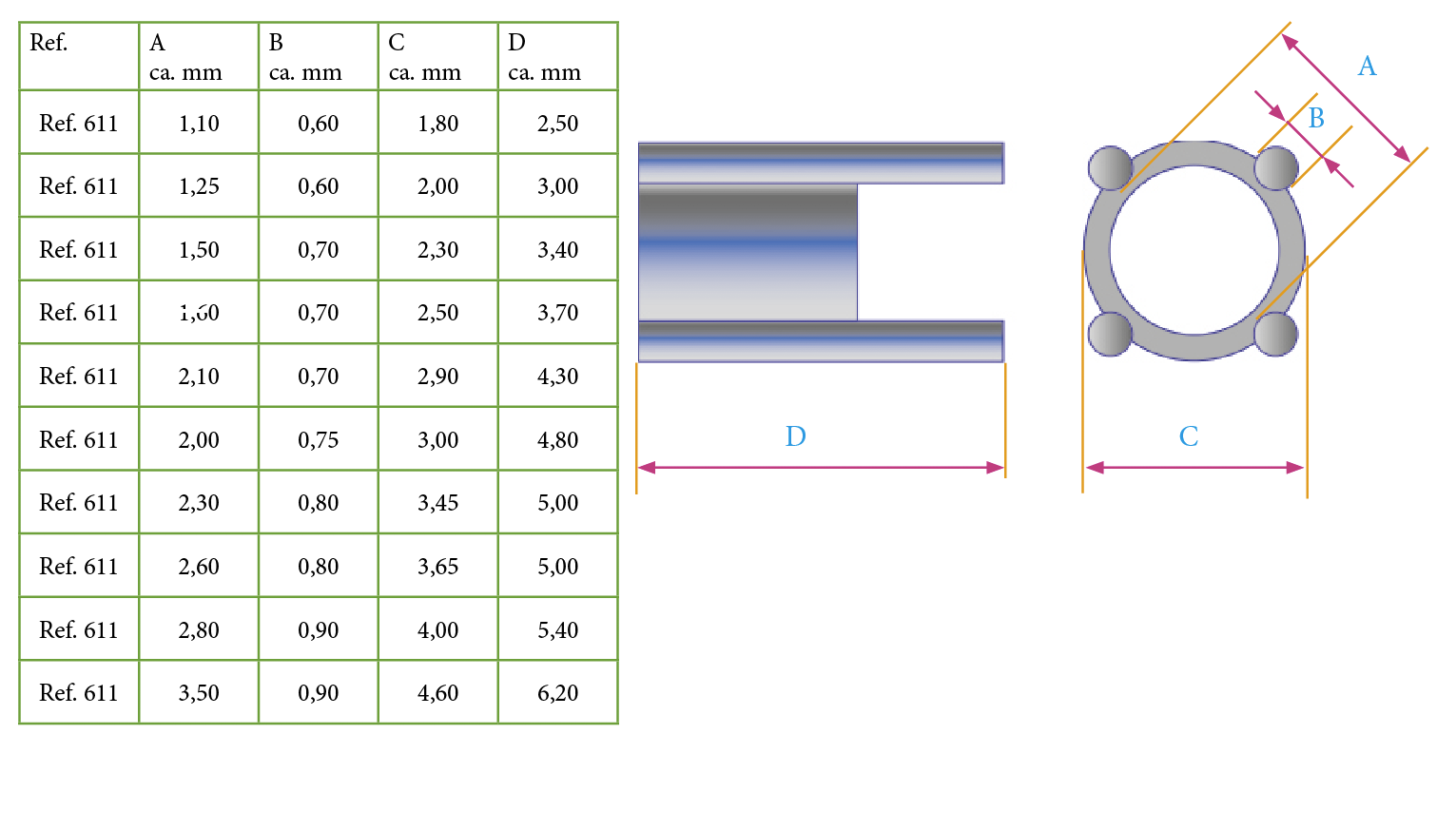 750 or gris, 1.25 mm dimension pierre